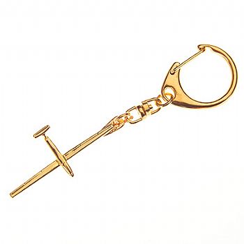Chaveiro confeccionado em metal formato 3D com corrente e argola, acabamento dourado ou niquelado de alta qualidade, sem pintura.