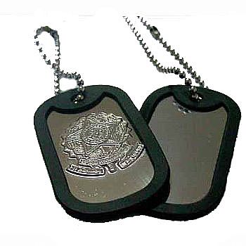 Plaqueta de Identificação (Dog Tags) em AÇO INOX, com Molduras de Borracha e Corrente em AÇO INOX.