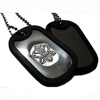 Plaqueta de Identificação (Dog Tags) em AÇO INOX, com Molduras de Borracha e Corrente em AÇO INOX.