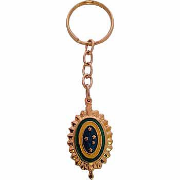 Chaveiro confeccionado em metal nobre, estampado em baixo relevo com acabamento niquelado ou dourado de alta qualidade ,  pintado à mão e resinado com resina cristal .