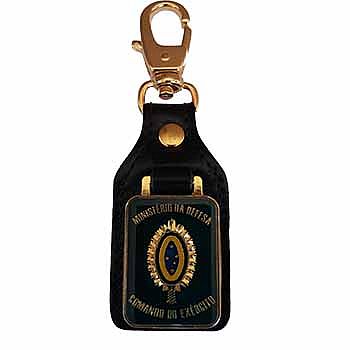 Chaveiro confeccionado em metal estampado, fixado em couro legítimo, argola acabamento dourado de alta qualidade, pintado à mão e coberto com uma camada de resina cristal.