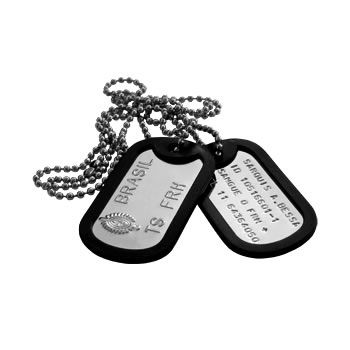 Plaqueta de Identificação (Dog Tags) em AÇO INOX, com Molduras de Borracha e Corrente em AÇO INOX.