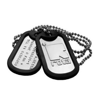 Plaqueta de Identificação (Dog Tags) em AÇO INOX, com Molduras de Borracha e Corrente em AÇO INOX.