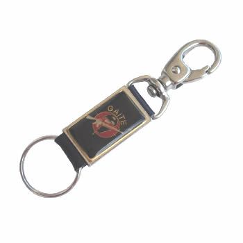 Chaveiro tubolar com argola e mosquetão modelo GATE, acabamento dourado ou niquelado.